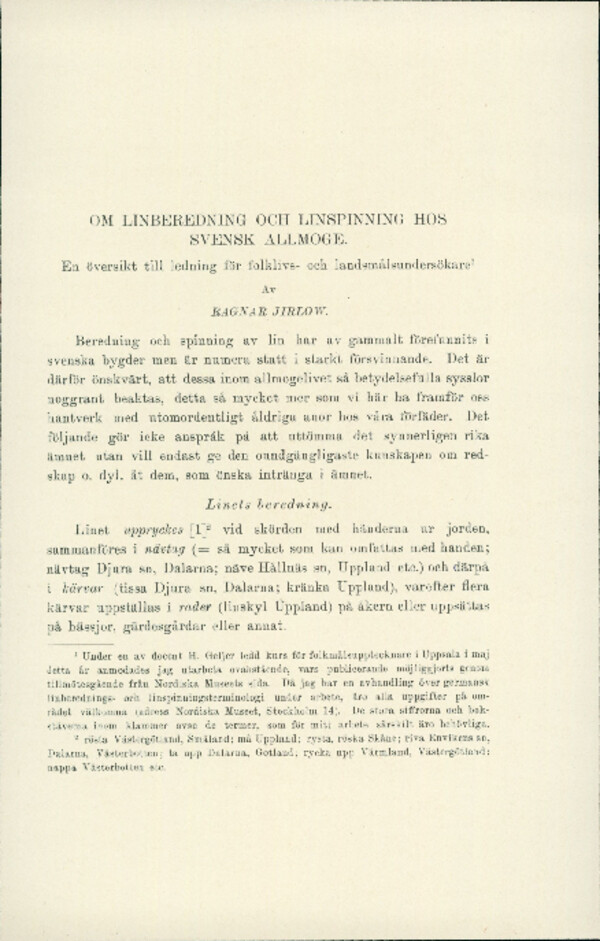 Om linberedning och linspinning hos svensk allmoge