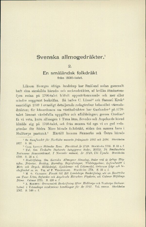 Svenska allmogedräkter: 2. En småländsk folkdräkt från 1830-talet