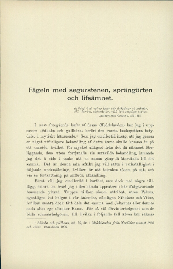 Fågeln med segerstenen, sprängörten och lifsämnet