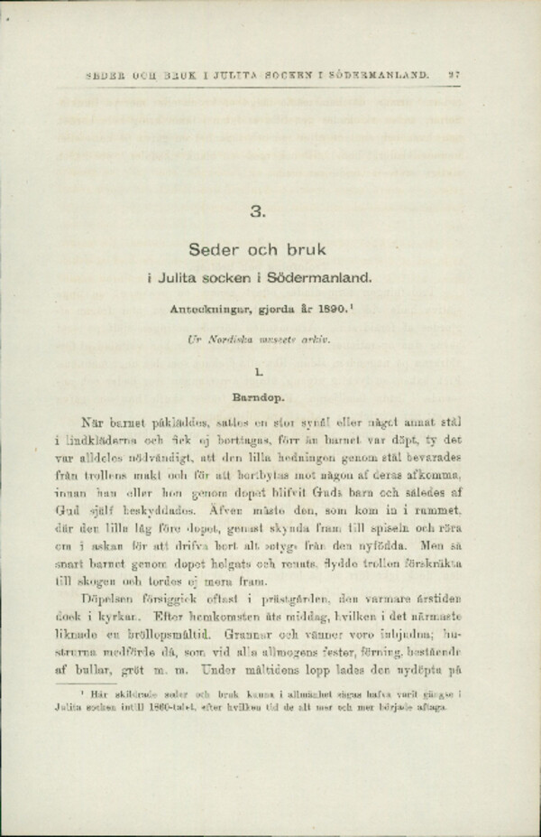 Seder och bruk i Julita socken i Södermanland: anteckningar gjorda år 1890