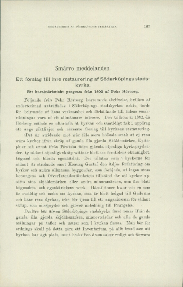 Ett förslag till inre restaurering af Söderköpings stadskyrka: ett karaktäristiskt program från 1802 af Pehr Hörberg