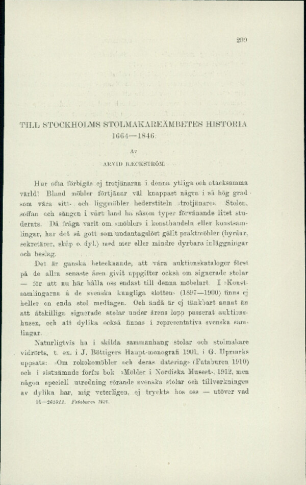 Till Stockholms stolmakareämbetes historia 1664—1846
