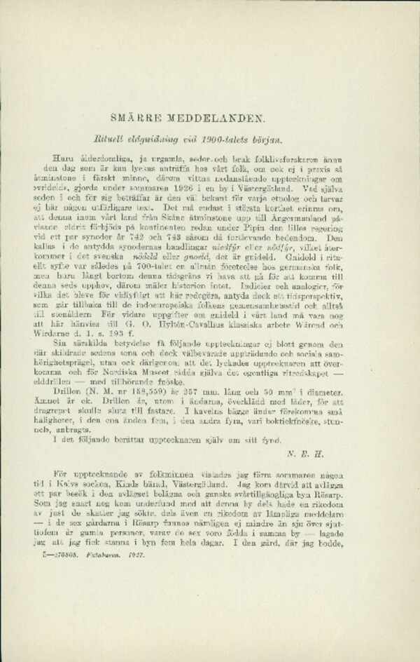 Rituell eldgnidning vid 1900-talets början