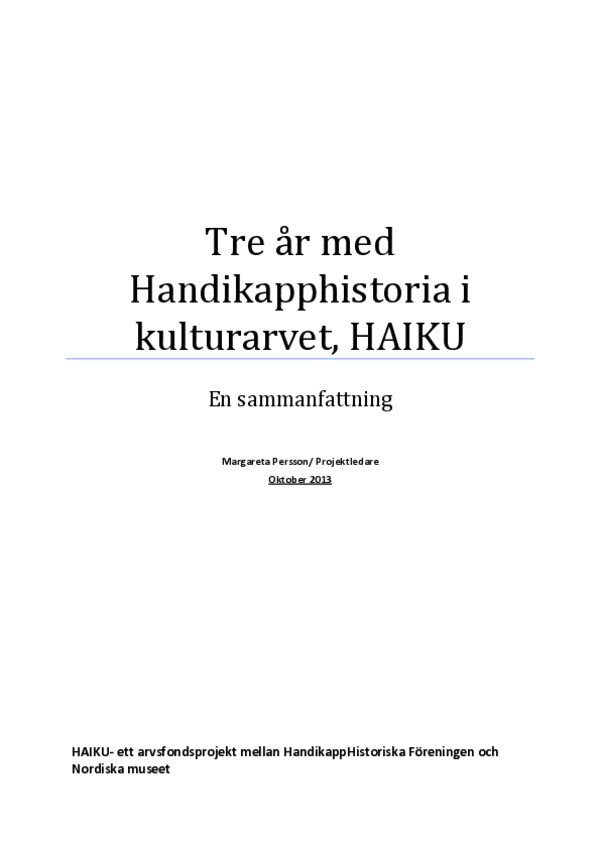 Tre år medHandikapphistoria ikulturarvet, HAIKU: en sammanfattning