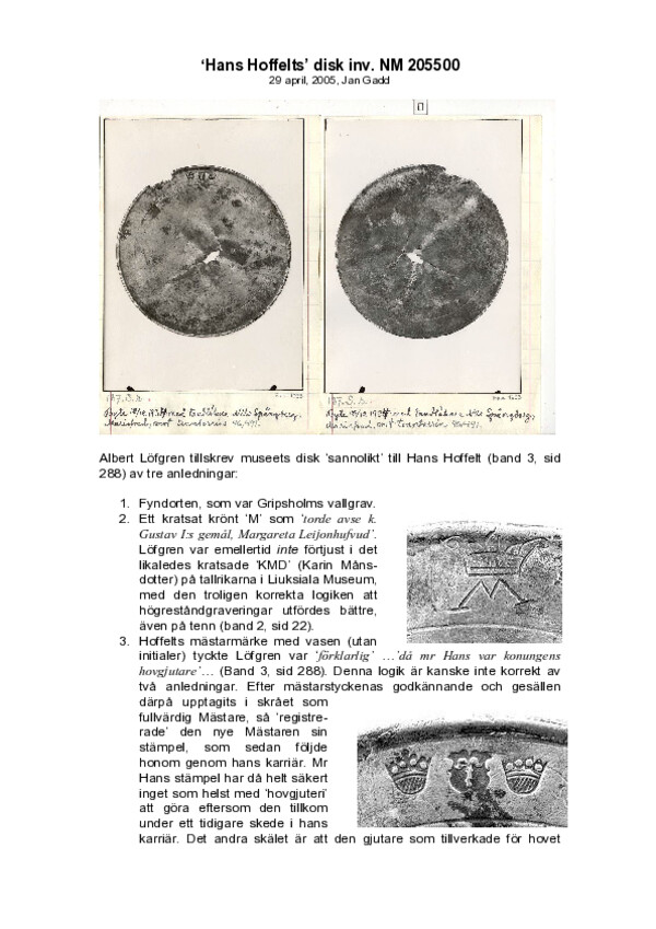 "Hans Hoffelts" disk inv. NM 2025500