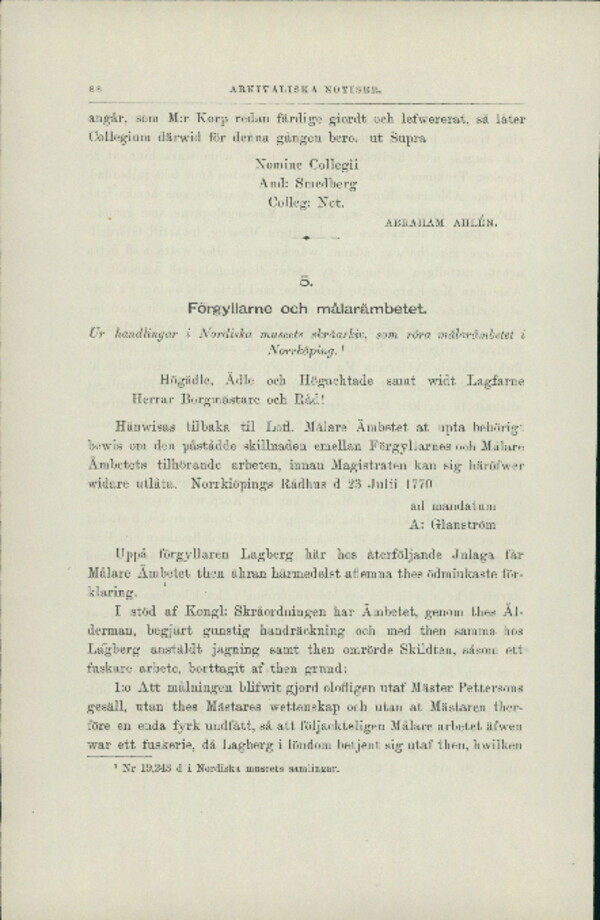 Förgyllarne och målarämbetet: ur handlingar i Nordiska museets skråarkiv, som röra målarämbetet i Norrköping